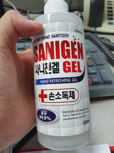 사니젠겔이구요 겉모습으로봤을때는 손소독제같진 않고 화학약품같이 생겼다는 느낌을 받았어요.