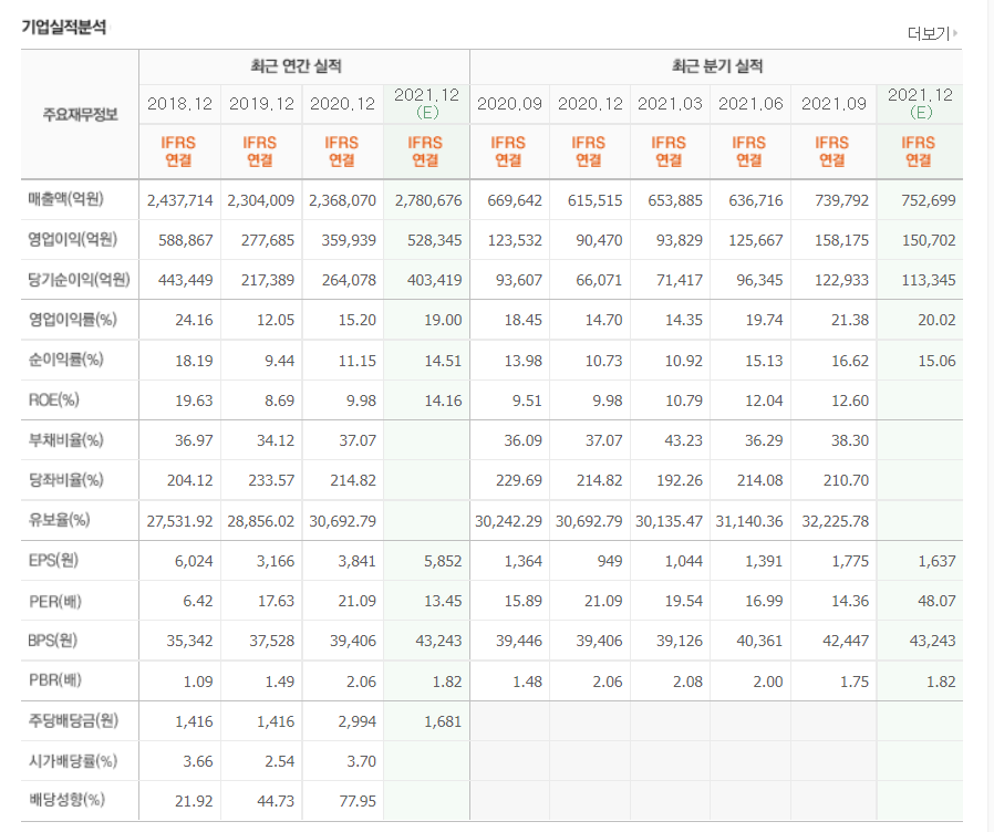 개설 투자에도 20조원이라는 투자를 하였기 때문에 4분기 특별배당금은 나오지 않거나