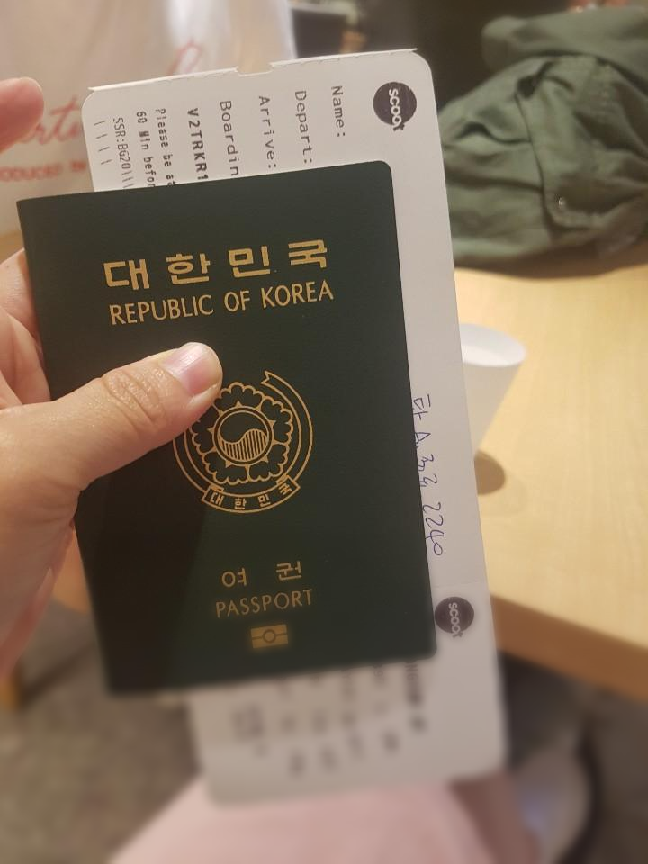 오는편 스쿠트 타이거항공 TR0896편 저녁 18:00 비행기 ▶ 21시 35분 인천 도착