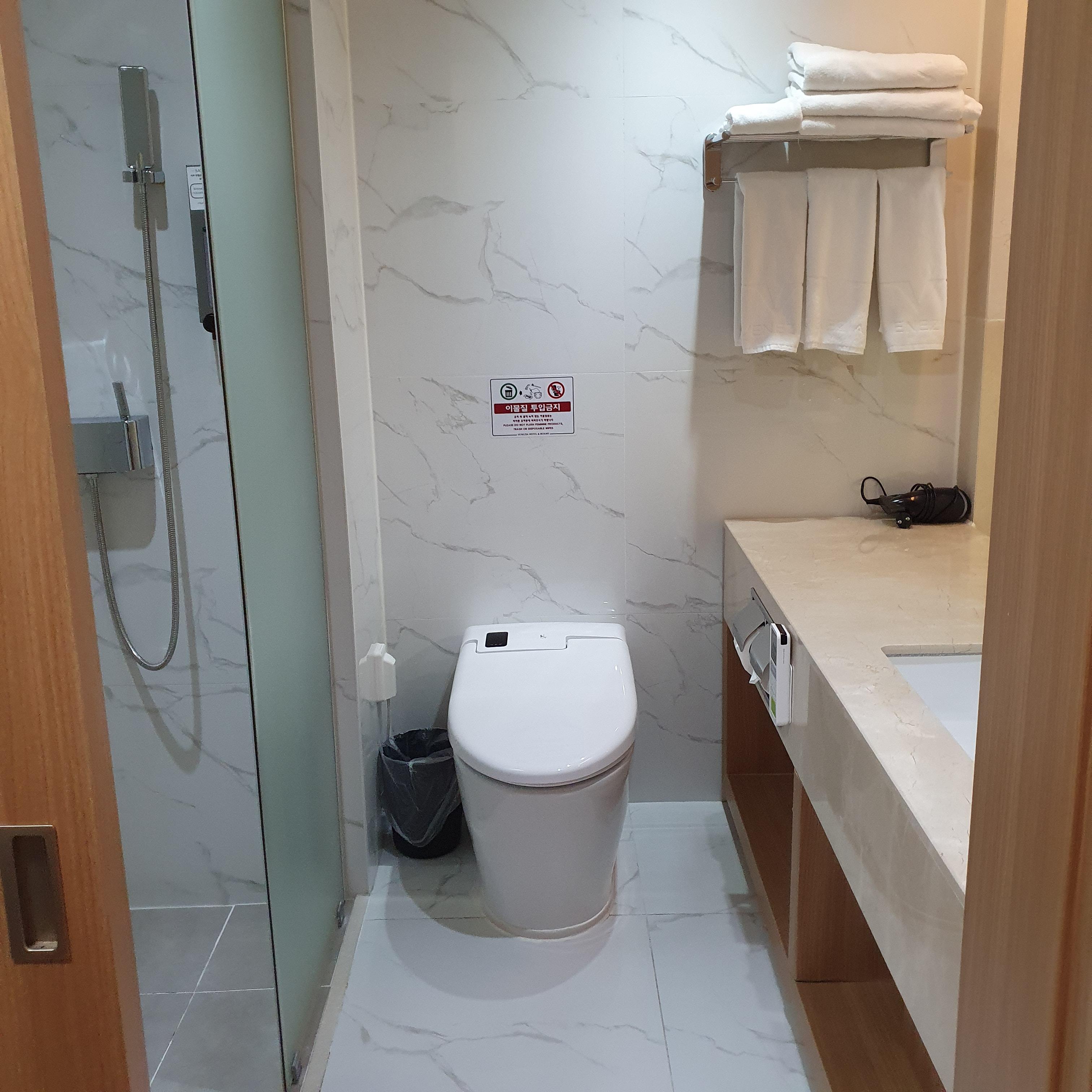 여수 베네치아호텔앤리조트 샤워부스가 따로 있습니다. 대신 린스와 치약,칫솔이 없습니다.