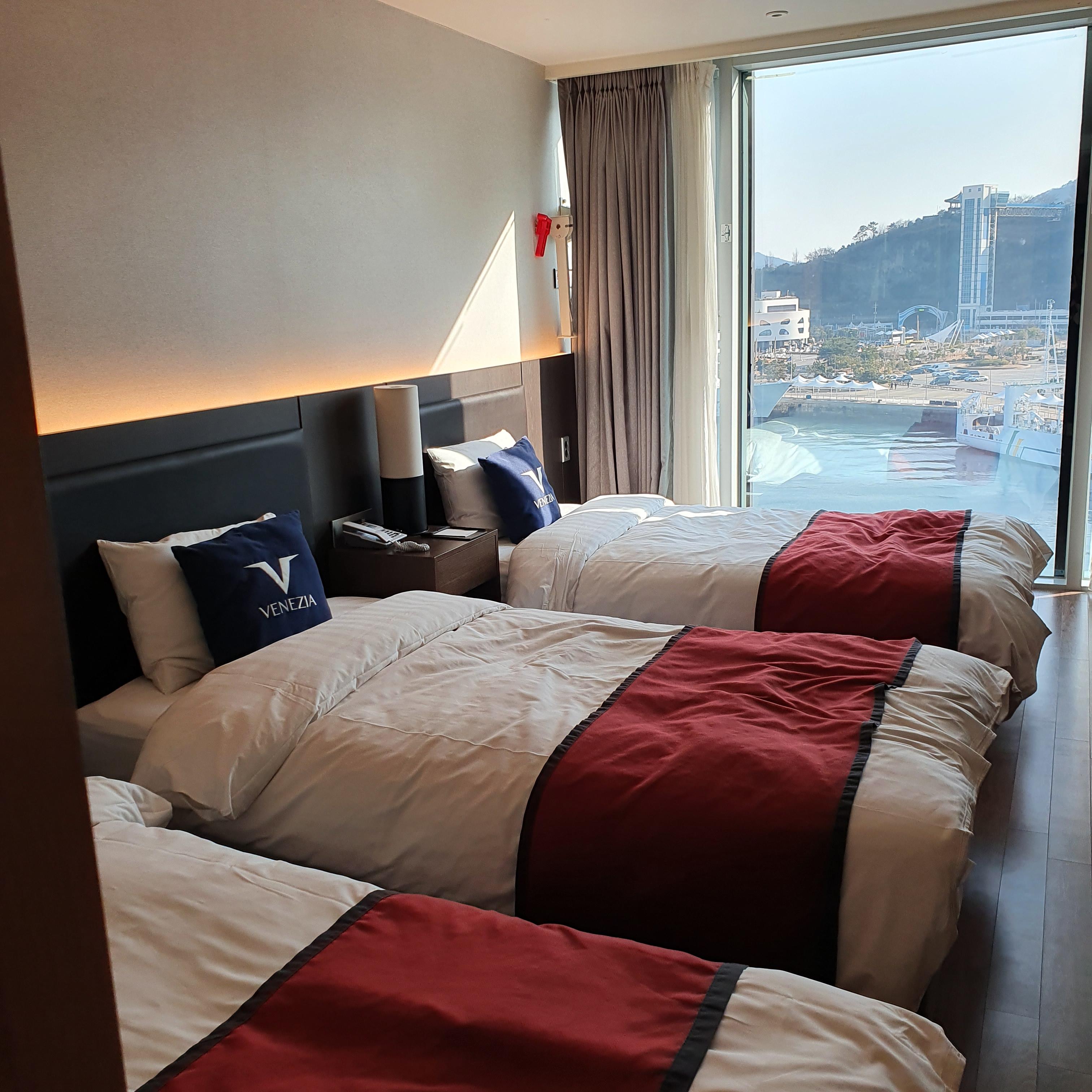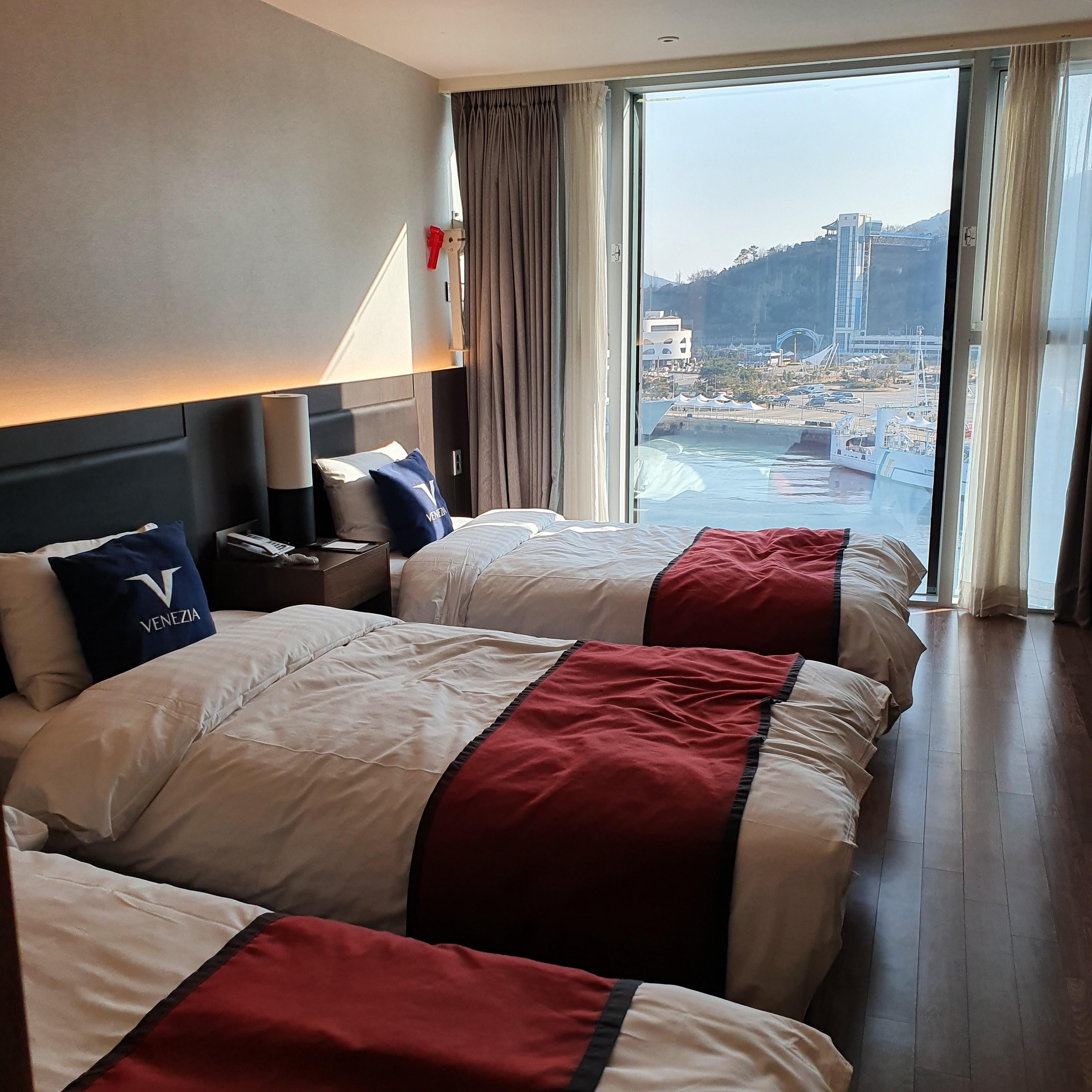 여수 베네치아호텔앤리조트 그리고 좋은점은 전객실 바다뷰인것 같더라구요, 친구와 왔을때 반대편도 바다뷰가 보이는곳에서 묶었는데