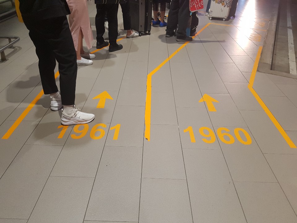 1961번 막차를 타실분은 조금 서둘러서 입국심사를 받고 나오세요.