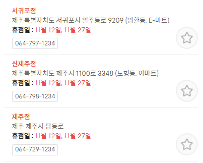 11월 이마트 휴무일 서귀포점, 신제주점, 제주점 11월 27일 금요일 휴무