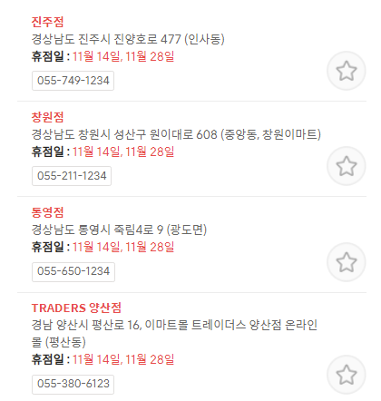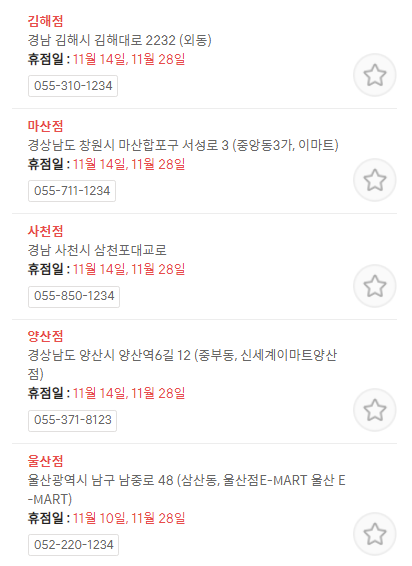 경상도 지역 (11월 이마트 휴무일, 지역마다 약간씩 상이함, 아래확인)