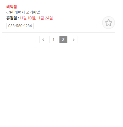 11월10일, 11월24일 수요일 휴무점 및 연락처 : 강릉점, 원주점, 태백점