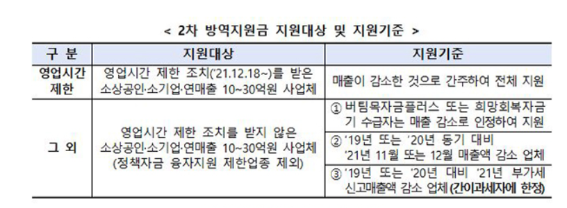 2차 방역지원금 지원대상