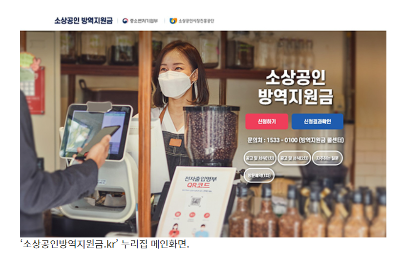 '소상공인방역지원금 신청홈페이지'바로가기