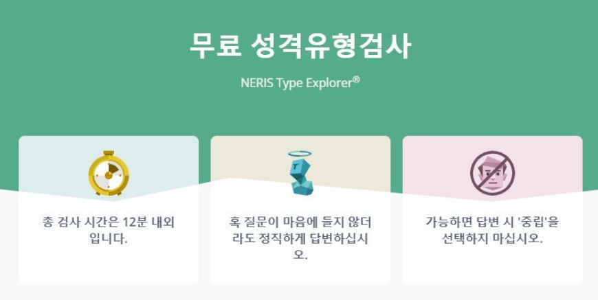 (위의 사이트에서 성격유형검사를 무료로 하실수 있으며 시간은 10~12분 정도 소요됩니다.)